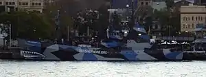 The MY Bob Barker is a ship owned and operated by the Sea Shepherd Conservation Society, named after American television game show host and animal rights activist Bob Barker, whose donation of $5 million to the society facilitated the purchase of the ship.[7] She began operating for the group in late 2009 / early 2010 in its campaign against whaling by Japanese fisheries. In October 2010, Sea Shepherd stated that Bob Barker had completed a major refit in Hobart, Tasmania.[8] Hobart is now the ship's honorary home port.[9]