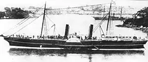 | Propulsion: | engine manufactured by McNabb & Co Greenock 250 horsepower, C2cy 410nhp 10 knots. 2 funnels |