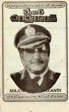 Major Chandrakanth is a 1993 Indian Telugu-language film, produced by Mohan Babu under his Sri Lakshmi Prasanna Pictures banner and directed by K. Raghavendra Rao. It stars N. T. Rama Rao, Mohan Babu, Sharada, Ramya Krishna, Nagma and has music composed by M. M. Keeravani. N. T. Rama Rao portrayed the characters of Chhatrapati Shivaji, Veerapandiya Kattabomman, Alluri Sitarama Raju, Netaji Subhash Chandra Bose in the Punyabhumi Nadesham song.