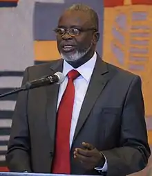 A long-time member of PAIGC, Sanhá served as governor of the Gabú and Biombo regions and held several cabinet ministries before becoming President of the National People's Assembly in 1994.[4] A Civil War broke out in June 1998 between elements of the army loyal to General Ansumane Mane and those loyal to President João Bernardo Vieira; on 26 November 1998, Sanhá addressed the first session of the National People's Assembly since the beginning of the war. Even though he was critical of both the rebels and Vieira, he focused more of his criticism on Vieira.[5] Following the ouster of Vieira on 7 May 1999, Sanhá was appointed as acting president by the military junta led by Mane on 11 May.[6] His appointment to succeed Vieira was intended to be in accordance with the constitution,[1][7] and he was to serve until a new election could be held later in the year.[8] Sanhá was sworn in on 14 May with the promise of peace and an end to political persecution.[9]