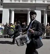 Multiple parades lead up to Mardi Gras day. On the Sunday before Fat Tuesday, Joe Cain Day celebrations are held. In recent years these have included a jogger's run and the Joe Cain Procession, also known as the people's parade. Joining the Joe Cain Procession does not require membership in a mystic society. However, participants must now sign up with the city, due to unsafe numbers of people participating in past years. The parade is always led by Chief Slacabamorinico, currently personified by only the fourth person in the city's long-Carnival history to wear the features of the "Chief". He is surrounded by the Mistresses of Joe Cain clad in red veils and dresses, followed by Cain's Merry Widows wailing in black mourning attire.