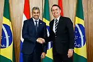 In January 2019, he broke off diplomatic relations with Venezuela and recognized Venezuelan opposition leader and National Assembly President Juan Guaidó as President of the country. He received Guaidó at the presidential palace in Asunción.[30]