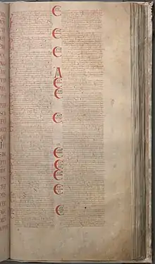 ![]() The Latin text of Mark 1:5–5:8 in Codex Gigas (13th century). | |