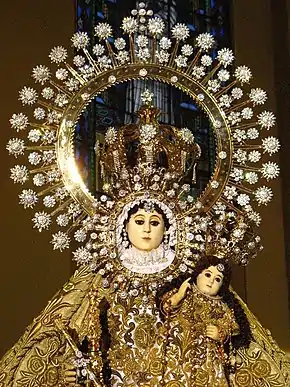 Key Marian devotions include: Seven Sorrows of Mary, Rosary and scapular, Miraculous Medal and Reparations to Mary.[94][95] The months of May and October are traditionally "Marian months" for Roman Catholics, e.g., the daily Rosary is encouraged in October and in May Marian devotions take place in many regions.[96][97][98] Popes have issued a number of Marian encyclicals and Apostolic Letters to encourage devotions to and the veneration of the Virgin Mary.