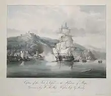 Born the illegitimate son of Frederick Berkeley, 5th Earl of Berkeley and Mary Berkeley (née Cole), Berkeley entered the Royal Navy in June 1802.[1] Promoted to lieutenant on 9 July 1808, he joined the fifth-rate HMS Hydra on the east coast of Spain and then commanded gunboats on the Tagus, reinforcing the Lines of Torres Vedras, in Autumn 1810 during the Peninsular War.[2] Promoted to commander on 19 December 1810, he was given command of the sixth-rate HMS Vestal.[1] After being promoted to captain on 7 June 1814 and, having become a Deputy Lieutenant of Sussex on 18 June 1824,[3] he took command of the fifth-rate HMS Semiramis, flagship of the Commander-in-Chief, Cork in May 1828.[4]