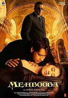 Mehbooba ("Beloved") is a Bollywood romance film written, produced and directed by Afzal Khan. The story is based on a love-triangle, with the lead protagonists being Sanjay Dutt, Ajay Devgn and Manisha Koirala. The music of the film was composed by Ismail Darbar. Mehbooba was released in India on 11 July 2008; it was shot in 2000, but got delayed and released in 2008.