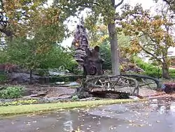 In 1935 Mexican artist Dionicio Rodriguez was hired to beautify the park with sculptures. Annie Laurie's Wishing Chairchairman, Broken Tree Bench, Abrahams Oak, Pool of Hebron and Cave of Machpelah are some of the most important sculptures that can be found in different locations throughout the cemetery.[2]