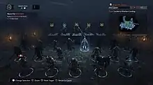 The game's signature feature is its Nemesis system. The Monolith team considered themselves experts in artificial intelligence, and wanted to push its boundaries. Allowing players to choose their story (a sandbox-game pillar)[30] and "leverage the new generation hardware through innovation", the team wanted to create a system allowing non-playable characters to respond to player actions; this later became the Nemesis system.[31] The system's idea was frameworked three months after development began, and to best present it everyone in the studio was involved. The developers hoped that with the system, orcs could be memorable for players. It was made more complex during the game's early development, incorporating personal relationships among orcs, but was later pared down when the studio considered it too complicated. The Nemesis system was also inspired by pen-and-paper role-playing games. Although most orcs are similar, some were designed with distinctive behavior patterns. These orcs have dialogue written by Dan Abnett, and the team hoped the special orcs would surprise players.[33] The team also hoped that the system would provide tension and competition, similar to a multiplayer game. The studio was inspired by sports games, where the narrative continues when players lose a match.[34] This can prevent immersion and narrative from breaking when players die in the game.[30] According to Rob Roberts, the system is designed so players can emotionally attach to the protagonist through gameplay drama.[35] They also hoped that through the system, players can create their own villain, leading to an organic story.[36]