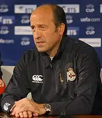 In 2004–05, Lotina coached RCD Espanyol[8] to qualification to the UEFA Cup after finishing fifth. The year 2006 brought him his first football trophy, as the team won the domestic cup against Real Zaragoza (4–1) in the manager's second season.[9] In the 2006–07 campaign, he returned to his native region after replacing the dismissed José Mari Bakero at the helm of 20th-placed Real Sociedad,[10] but the Basques were relegated from the first division for the first time in 40 years after ranking second from bottom.