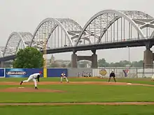 Modern Woodmen Park (known previously as John O'Donnell Stadium and Municipal Stadium) is a minor league baseball venue located in Davenport, Iowa, United States. It is home to the Quad Cities River Bandits, a A-Advance affiliate of the Kansas City Royals. Since 1987, St. Ambrose University plays all of its home baseball games there as well. Located on the banks of the Mississippi River, in the shadow of the Centennial Bridge, home run balls to right field often land in the river.