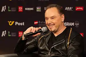 Shortly after the second semi-final, a winner's press conference was held for the ten qualifying countries. As part of this press conference, the qualifying artists took part in a draw to determine which half of the grand final they would subsequently participate in. This draw was done in the order the countries were announced during the semi-final. Montenegro was drawn to compete in the second half.[28] Following this draw, the shows' producers decided upon the running order of the final, as they had done for the semi-finals. Montenegro was subsequently placed to perform in position 16, following the entry from Greece and before the entry from Germany.[29]