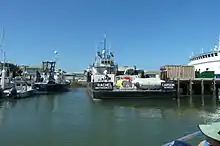 Moss Landing Harbor District berths over 600 boats, including 350 fishing boats, 200 pleasure craft, 30 research vessels, and a half dozen tour and charter boats. The harbor's commercial boats land dungeness crab, halibut, king salmon, albacore, rockfish, sablefish, anchovies, sardines, squid, black cod, red snapper, covina, prawns, mackerel, and others. Several maritime businesses support harbor users including a fuel dock. The harbor district also provides two public boat launches and a community park.[12]