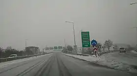 A27 exit to Motorway 2 (towards the east) at the Kozani Ι/C (south end of A27), in winter 2018-19