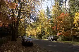 Mount Wilson is a long, low mountain formation that sprawls for 5 kilometres (3.1 mi) in the northern Blue Mountains area. It is completely surrounded by the Blue Mountains National Park, a World Heritage Area. It has been partly developed as a residential area, with elaborate gardens that have become a tourist attraction. The area is particularly popular in the autumn, when the red and orange leaves give it extra colour. According to some, the "well organised locals have managed to resist the tidal wave of development which swept through the other mountain towns."[3]