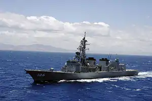 The Murasame-class destroyer (むらさめ型護衛艦, Murasame-gata-goei-kan) is a class of destroyers, serving with the Japan Maritime Self-Defense Force (JMSDF). This is the first class of the second-generation general-purpose destroyers of the JMSDF.[1]