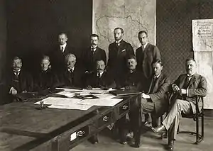 Already in 1919 Sleževičius had prepared the groundwork for the parliamentary elections. In April 1920, he was elected as the representative of II (Kaunas) constituency to the Constituent Assembly of Lithuania, tasked with drafting the Constitution of Lithuania. His Lithuanian Popular Socialist Democratic Party (LSLDP) formed a block with the Peasant Union, another breakaway from LDP. Later in 1920, after an armed conflict between Poland and Lithuania erupted, Sleževičius was elected the chairman of the Lithuanian Defense Committee (Vyriausias Lietuvos gynimo komitetas), tasked with organizing and supporting the armed forces.[2] Even without a position on the government, Sleževičius remained an influential politician. According to prominent inter-war lawyer Michał Pius Römer, in 1921 Sleževičius was "one of the most powerful men in the country".[9]