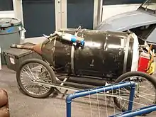 For small-scale testing of other wheel orientations, Adam and Jamie returned to the shop and built a cart to run on a treadmill. They found that if two wheels, diagonally opposite each other, were turned 45 degrees out of phase with the other two, the cart achieved a balance of smoothness and stability. A full-scale test at almost 20 mph (32 km/h) caused the tire treads and brake pads to come off the wheels. Despite the mechanical failures, they classified the myth as plausible, based on the sensor readouts and their own sensations. |