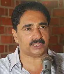 N. K. Premachandran is an Indian politician. He is presently the Member of Parliament from Kollam Lok Sabha constituency.[1] He was the former minister for Water Resources in the government of Kerala and was responsible for irrigation, ground water development, water supply and sanitation.[2] He was a Member of the both the houses of the Parliament of India (Lok Sabha and Rajya Sabha).[3][4] He is known for his public speeches.[5] Premachandran has written a book "Oh Iraq" based on his travel experience to Iraq. He was instrumental in taking up the issue of the safety of Mullaperiyar Dam.[6]