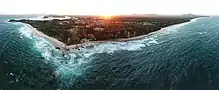 Nambucca Heads is a town on the Mid North Coast of New South Wales, Australia in the Nambucca Valley.[4] It is located on a ridge, north of the estuary of the Nambucca River near the Pacific Highway. Its 2011 population was 6,137 (6,327 in 2016 census), including 602 (9.7%) indigenous persons and 5,180 (83.3%) Australian-born persons in the Shire.[5] The place name is derived from an Gumbaynggirr word Ngambagabaga. Clement Hodgkinson asked two Ngamba men what the name of the area was they responded to Nyambagabaga as the spot they were standing was a bend in the river where a Ngamba giant was speared in the leg in the Dreaming. This location is the Foreshore Caravan Park now. Ngamba is a subsection of Gumbaynggirr Nation & Baga Baga means Knee. This was later interpreted as Nambucca.[6] It is a popular holiday and retirement destination.