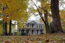Nashville Zoo is located on property that was once a 300-acre slave holding farm owned by Michael and Elizabeth Dunn.[6] The Dunn's original home, built in 1810 through slave labor, is still located on the property. Margaret and Elise Croft, the great-great granddaughters of Michael Dunn, the original owner, were the last of the family to live at this location.[7][8] In 1989, archaeologists evaluating the property for its archaeological resources discovered an unmarked cemetery fairly close to Grassmere's entrance off of Nolensville Road.[9] When construction for the zoo began in 1997, this graveyard was not disturbed. It was only in 2013 when a newer entry plaza was planned did the zoo petition to have the bodies exhumed and their remains moved closer to the historic Dunn house by the state archaeologist. This exhumation revealed 9 to 30 African-Americans who had been buried there.[10][11]