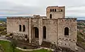 The National Museum "George Castrioti Skanderbeg" (Albanian: Muzeu Kombëtar "Gjergj Kastrioti Skënderbeu"), also known as the Skanderbeg Museum or the Kruja Museum, is located in Krujë and is one of the most important and visited museums in Albania. The museum was built at the end of the 70's and was inaugurated on November 1, 1982. Its architecture was designed by architects Pirro Vaso and Pranvera Hoxha. Construction works were realized by a local team managed by Robert Kote. The museum has the character of a memorial, architecturally inspired by traditional Albanian stone towers and medieval Romanesque architecture.[1] The name of the museum is in the honor of the Albanian national hero Gjergj Kastrioti Skënderbej.