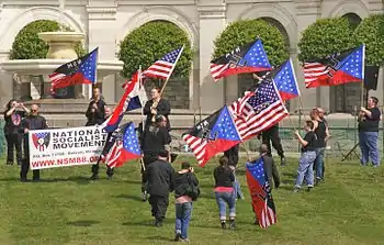 The Movement was responsible for leading the demonstration which sparked the 2005 Toledo riot.[22] In April 2006, they held a rally on the State Capitol steps in Lansing, Michigan, which was met by a larger counter-rally and ended in scuffles.[23] In 2007, some members left to join the now-defunct National Socialist Order of America, which was led by 2008 presidential candidate John Taylor Bowles.