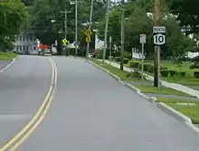 Downtown, maintenance of NY 10 shifts from the New York State Department of Transportation (NYSDOT) to the village at Mohawk Street. The highway remains locally owned for three blocks to Incinerator Road, where the route becomes state-maintained once more.[5] During this stretch, NY 10 intersects NY 5S at Main Street. North of Incinerator Road, the route passes under the Thruway before crossing into the neighboring village of Palatine Bridge at the midpoint of the Mohawk River. On the northern riverbank, NY 10 meets NY 5 and overlaps the route westward for a block before continuing northward into the largely rural town of Palatine.[4]