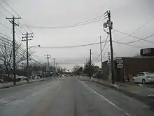 NY 105 begins at an intersection with NY 106 (Newbridge Road) and Jerusalem Avenue in the North Bellmore section of the town of Hempstead. West of this point, Jerusalem Avenue is county-maintained as County Route 105 (CR 105), an unsigned route. NY 105 proceeds east along the two-lane Jerusalem Avenue, paralleling the Southern State Parkway as it travels through a commercial section of North Bellmore. After 1 mile (1.6 km), the road widens slightly to include a center turn lane. Not far to the east, NY 105 crosses over the Wantagh State Parkway without connecting to the highway.[4]