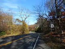 Harbor Road was improved to state highway standards as part of a project contracted out by the state of New York on September 4, 1919. A total of 5.86 miles (9.43 km) of highway were rebuilt as part of the $205,500 project (equivalent to $2.95 million in 2021), including the westernmost 4.5 miles (7.2 km) of modern NY 25A in Suffolk County. The roads reconstructed as part of the project were added to the state highway system on January 11, 1921, as unsigned State Highway 1525 (SH 1525).[5][6] The east–west portion of SH 1525 was designated as part of NY 25 in the mid-1920s;[7][8] however, the north–south leg did not receive a posted route number until c.1932, when it became NY 108. The alignment of NY 108 has not been altered as of 1932.[2][3]