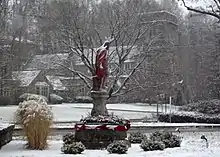In 1965, Rockefeller unveiled plans for the Potantico Expressway, a connector from the to-be-constructed Hudson River Expressway (NY 9A) to the Taconic State Parkway.[13] Some opposition to the idea arose on the grounds that the new highway would only benefit the Rockefeller estate and not the residents.[14] Nonetheless, construction began on the Potantico Expressway (now known as Phelps Way) in 1969. When the highway was completed in November 1970, it became part of a rerouted NY 117. NY 117's former alignment along Bedford Road became NY 448.[15][16][17] The Hudson River Expressway project was cancelled in 1971,[18] and the western stub of the expressway now serves Phelps Hospital.[19]