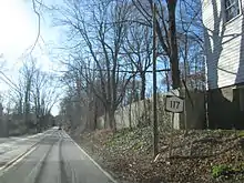The easternmost portion of NY 117 in Katonah passed through a historic district containing several homes dating back to the late 19th century.[20] Following the construction of nearby I-684 in 1968, this segment of NY 117 became a truck route between the Interstate Highway and industrial areas along NY 117 south of Katonah. While the Saw Mill River Parkway would have provided an alternate route to I-684 from NY 117, commercial traffic was prohibited from using the highway.[21] The trucks that used NY 117 would shake the historic homes as it passed through the hamlet, causing small amounts of damage to the structures.[20][21] A study analyzing the issue of truck traffic along NY 117 in Katonah began in 1976 at the request of the town of Bedford.[20]