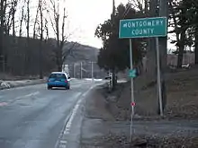 NY 160 begins at an intersection with NY 159 near the northern edge of the hamlet of Mariaville Lake in western Schenectady County. The route heads north through rural Duanesburg, intersecting with Dennison Road (CR 96) before merging with Sulphur Springs Road on the Schenectady–Montgomery County line. NY 160 straddles the county line for roughly 0.6 miles (1.0 km)[3] (and is officially located in Montgomery County for 0.4 miles or 0.6 kilometres[1]) through the hamlet of Scotch Church prior to turning east off the county line as it exits the community. While in Montgomery County, NY 160 intersects one road of note: Thayer Road (CR 165), a connector leading northwest to the city of Amsterdam.[3]