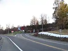 West of Camillus, NY 5 and NY 20SY passed to the north of the West Hill Golf and Croquet Club before veering to the southeast as the highway approached the village of Camillus and the edge of a valley surrounding Ninemile Creek that contains the village. Upon reaching the lip of the valley, NY 5 and NY 20SY descended northeastward into both the valley and the village. Here, NY 5 and NY 20SY met the northern terminus of NY 174 and NY 321 before exiting the valley and entering an area of Camillus known as Fairmount.[4][5]