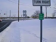 The westernmost portion of what is now NY 251 between NY 383 in Scottsville and the junction of River and Quaker Roads south of the village was once part of Route 15, an unsigned legislative route assigned by the New York State Legislature. Route 15 was extended northward from its original terminus in Caledonia to Scottsville via River Road on July 24, 1911;[5][6] however, it was realigned on March 1, 1921, to enter Scottsville on modern NY 383 instead.[7] When the first set of posted routes were assigned in New York in 1924, this piece of modern NY 251 did not receive a designation. Another section did, however, as the portion extending from Mendon east to Victor was designated as part of NY 15.[8] In the 1930 renumbering of state highways in New York, NY 15 was rerouted between Victor and Pittsford to follow current NY 96. The former routing of NY 15 from Victor to Mendon became part of NY 251,[9] a new highway extending from NY 15 in Victor to NY 33 in Gates via Chili and Scottsville. West of Scottsville, NY 251 was routed on modern NY 383 and NY 386.[2][10]