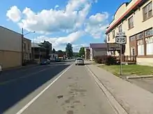 NY 275 begins at the intersection of Wellsville and Main streets in the village of Bolivar. At this point, NY 417 switches from South Main Street to Wellsville Street while NY 275 proceeds northeastward on the two-lane Main Street. The route initially passes by commercial buildings in the village's business district; however, they quickly give way to more residential areas after just two blocks. As the highway heads away from the village center, the homes become scattered ahead of intersections with the eastern terminus of County Route 5A (CR 5A, named Salt Rising Road) and the south end of CR 40 (Deans Flat Road). The rural trend soon reverses as NY 275 enters the adjacent village of Richburg. Here, NY 275 is also known as Main Street as it serves Richburg's business district and the surrounding residential neighborhoods.[3]