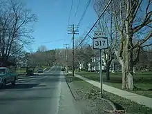 New York State Route 317 (NY 317) is a 3.12-mile (5.02 km) long state highway within the town of Elbridge in Onondaga County, New York, in the United States. It begins at an intersection with NY 5 in the village of Elbridge and ends at a junction with NY 31 in the village of Jordan. The highway is known locally as Jordan Road and Main Street.