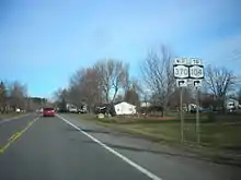 NY 370 begins at an intersection with NY 104 and NY 104A south of the village of Red Creek in the northeastern Wayne County town of Wolcott. The route heads southwest from this spot, utilizing a northeastward extension of Ridge Road[6] that was part of US 104 prior to the construction of the super two highway now used by NY 104.[7] After passing 0.7 miles (1.1 km) of open farmland, the route breaks from Ridge Road and travels southeast through the Town of Butler and to the Cayuga County line. The rural surroundings follow NY 370 across the county line and into the town of Victory, where the highway briefly takes on a more easterly alignment as it intersects NY 38 in the town center. Past NY 38, NY 370 gradually curves southward for roughly 2.5 miles (4.0 km) to reach the Victory–Conquest town line. Here, it overtakes the east–west Conquest–Victory Town Line Road and heads eastward along the town line toward the village of Cato.[6]