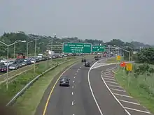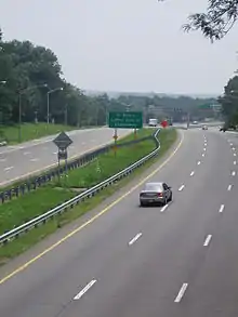 After entering Staten Island, NY 440 passes through a toll barrier for eastbound traffic entering the city. Immediately following the toll barrier is a ramp to Page Avenue, the eastbound exit 1.[4] In the westbound direction, the ramp to Arthur Kill Road is exit 1.