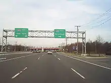 During the 1990s, the Department of Transportation looked into the expansion of NY 347 and NY 454. The studies suggested that the state would add one additional traffic lane in each direction, giving most of the highway six lanes with eight travel lanes along the concurrency in Hauppauge. The new lanes would also be capable of holding rapid-commute vehicles for the Long Island Rapid Commute.[8] The interchange where Routes 347 and 454 fork in Hauppague is slated to go from an at-grade fork to a grade-separated interchange. The project, which will cost $359 million (2009 USD) was scheduled to be completed between 2012 and 2015.[9]