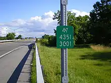 Off the expressways, the former alignments of NY 47 now carry several designations. Howard Road, bypassed by the 1960s realignment in Gates, is still maintained by the New York State Department of Transportation as NY 940L, an unsigned reference route 2.37 miles (3.81 km) in length.[1] Beahan Road, also bypassed by the same 1960s rerouting, was reconfigured into its current alignment by 1971 due to an expansion by the airport.[11] The section of Beahan Road that carried NY 47 is currently maintained by Monroe County as part of County Route 164 (CR 164), the county's unsigned designation for all of Beahan Road.[29][30] The portion of NY 47 on Elmwood Avenue from the Rochester city line to I-590 is also maintained by Monroe County as part of CR 87.[31] Lastly, the segments of Winton Road outside of the Rochester city limits are now part of CR 98.[31] The remainder of c. 1980 NY 47 and the former alignments of the route are currently locally maintained.