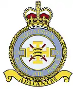 | Squadron Badge | In front of two swords in saltire a cross potent quadrat charged with three seaxes fesswise in pale[2] |