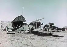 No. 111 Squadron of the Royal Flying Corps was formed at Deir el-Balah, Palestine, on 1 August 1917, under the command of Major Shekleton, with a mixed bag of single seat fighters as the first dedicated fighter squadron in the region.[4] Its mission was to restrict enemy reconnaissance flights and challenge the German fighter presence over Suez. It was reinforced by Bristol F.2 Fighters in September, one of these claiming the first aerial victory for No. 111 Squadron on 8 October.[5] The squadron began to receive the Royal Aircraft Factory S.E.5a in October 1917. The same month also saw a change of command with Major Shekleton was replaced by Major Strent, after Shekleton became Commander of the 40th (Army) Wing.[4] By December, No. 111 Squadron was based at Julis.[4]