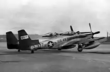 In Far East Air Forces, there were three squadrons operating the Twin Mustang, consisting of 45 aircraft.[2] The 4th Fighter (All Weather) Squadron was attached to the 51st Fighter-Interceptor Wing at Naha Air Base, Okinawa, tasked with providing air defense within the Twentieth Air Force's area of responsibility during darkness and inclement weather. The 68th F(AW)S area would cover southern Japan from their base at Itazuke and the 8th Fighter Bomber Wing, with the 339th F(AW)S covering Tokyo and northern Japan from Johnson Air Base. FEAF had about 40 Twin Mustangs assigned to the command.[7]