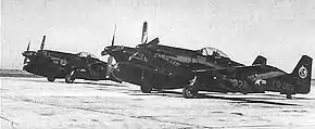 F-82Gs from Far East Air Force were also sent to Alaska, as jets took over combat duties over the skies of Korea. The FEAF F-82s, however, arrived in a badly corroded condition. Also, many of these aircraft which were sent to the 449th had high time on their airframes from long bomber escort and air defense flights, as well as the stress from combat duty in Korea causing many of them to be difficult to maintain.[10] After four months at the 39th Air Depot Wing at Elmendorf, most were scrapped.[12]