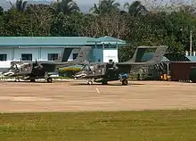 The Philippine Air Force (PAF) received 24 OV-10As from U.S. stocks in 1991, later followed by a further nine from the United States,[34] and eight ex-Thai Air Force OV-10Cs in 2003–2004.[34][35] The OV-10s are operated by the 16th Attack Squadron and 25th Composite Attack Squadron of the 15th Strike Wing, based in Sangley Point, Cavite.[36] The PAF flies Broncos on search-and-rescue and COIN operations in various parts of the Philippines. The first two women combat pilots in the PAF flew OV-10s with the 16th. This squadron flew anti-terrorist operations in the Jolo island.[37]
