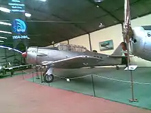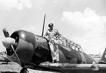 The South African Air Force received their first T-6s in October 1942 to be used by the Joint Air Training Scheme. By July 1944, 633 Harvard Mk IIA T-6s and IIIs had been shipped to South Africa with another 555 (379 MkIIAs and 176 Mk IIIs) to arrive by October 1945. Another 65 (AT-6Ds and 30 T-6Gs) were ordered between 1952-1956.[6] The T-6 remained in service until 1995 as a basic trainer, mainly as a result of the United Nations arms embargo against South Africa's apartheid policies. They were replaced by Pilatus PC-7 MkII turboprop trainers.[7]