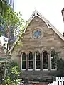 After a year of discussion, plans for the new school were drawn by architect George Allan Mansfield, a leading architect at the time who had built many school buildings throughout Sydney in the 1870s and early 1880s. The plans included construction of a new Gothic Revival stone building to accommodate at least 100 children, adjoining small religious room, and also erection of a new teachers' residence with detached kitchen. The building was contracted to W. Jago for a period of ten months and was accepted by council February 1876. The school building was built of locally quarried Hawkesbury sandstone with dressed ashlar surround to all openings. The gabled roof featured ornamental bands of hexagonal shaped slates, carved finials, and detailed barge boards. The final cost of the school was £4,700 reflecting the building's elaborate stone detailing and its importance to the community. In March 1877 St. Leonard's Public School opened with 320 boys, girls and infants. The building boasted a finely detailed bell tower, which was one of the earliest and most prominent landmarks of the lower North Shore visible from the city.[1][3]:6