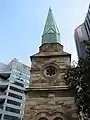 The Kemp-designed two storey brick school buildings facing Miller Street were demolished as part of the tower redevelopment. A 1980 photo[4] shows this building still facing Miller Street.[1] The original school building was adapted for use as a hotel c. 1991. In 1997 approvals were given to construct a childcare centre at the base of the adjacent Optus tower.[5][1]