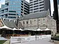 West: along the edge of the former school, facing Gas Lane the curtilage is about 4 metres into this laneway space.[6][3]:23, 28 On the eastern side of the former school, the curtilage is about 4m east of the school's facade.[6][3]:23, 28, 29 On the northern side of the former school, the northern skylight structure of the Greenwood Plaza below is entirely within the SHR curtilage.[1][6][3]:23, 28, 29