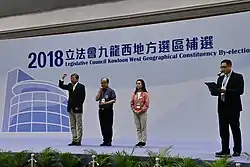 The 2018 Kowloon West by-election was held on 25 November 2018 after the incumbent pro-democracy Legislative Councillor Lau Siu-lai of Kowloon West was disqualified from the Legislative Council of Hong Kong (LegCo) after the oath-taking controversy resulted in the disqualifications of the six pro-democracy and localist legislators.[1] It followed the by-election of four other vacated seats on 11 March 2018. Chan Hoi-yan, a nonpartisan backed by the pro-Beijing camp won over veteran democrat Lee Cheuk-yan of the Labour Party, a backup candidate for the pro-democracy camp after Lau's candidacy was disqualified.